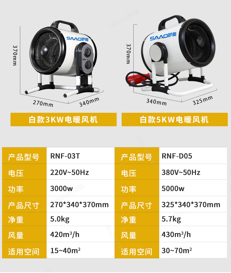 3kw电暖风机(白色款)是济宁萨奥机械有限公司经过多年精心研制而成的,能广泛的适用于大型结构工程、建筑工地、道路维修、停车场,以及房屋完工工程和公共设施。它们启动的及时性 和使用的随时性...